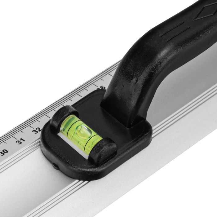 Металлическая линейка-уровень Matrix 30575 с пластмассовой ручкой и 2 глазками имеет шкалу длиной 800 мм и предназначена для разметки материалов и измерения различных предметов. 2 жидкостных глазка позволяют определить степень отклонения поверхностей от вертикали и горизонтали. Линейка используется во время строительных и ремонтных работ, также будет полезна при установке мебели и монтаже навесного оборудования.ПреимуществаДеформационная стойкость — линейка-уровень изготовлена из жесткого алюминиевого профиля, усиленного ребрами жесткости.Удобное считывание результатов измерения — четкая шкала хорошо видна даже при длительной эксплуатации.Комфортная работа — инструмент снабжен удобной пластмассовой рукояткой.