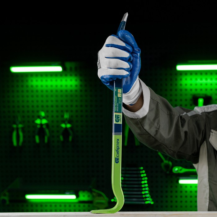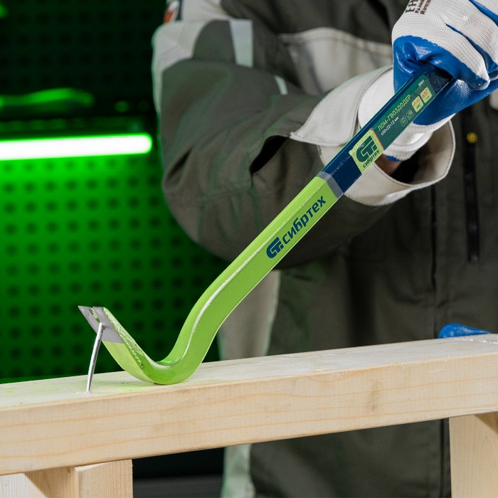 Лом-гвоздодер Сибртех 25241 размером 450 х 22 х 12 мм позволяет удалять гвозди, а также срывать доски с пола, разбирать ящики, демонтировать заборы, вагонку со стен или шифер с крыши. Может служить рычагом для поднимания грузов, поскольку прямоугольно-овальный профиль значительно усиливает его на момент излома. Инструмент подходит для профессионального и бытового применения.ПреимуществаПрочность — лом-гвоздодер из кованой стали 65 Mn, обладающей пружинными свойствами, не ломается при высоких нагрузках.Устойчивость к повреждениям и износу — твердость рабочих частей составляет 42-44 HRC.Защита от разрушения — на инструмент нанесено антикоррозийное покрытие.