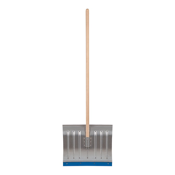Алюминиевая лопата для уборки снега Сибртех 61582 с деревянным черенком, 430 х 370 х 1350 мм, — ручной инструмент, которым можно освободить от снежных заносов тротуар, садовые дорожки, подъездные пути к дому или гаражу. Длинный черенок позволяет работать, не нагружая позвоночник. Инструмент устойчив к низким температурам и выдерживает мороз до -60 градусов.ПреимуществаРебра жесткости принимают на себя основную нагрузку, защищая ковш от повреждений при изгибающих нагрузках.Защитная накладка на кромке ковша облегчает уборку слежавшегося снега и предотвращает изнашивание инструмента.Ковш из алюминиевого сплава и деревянная рукоятка не подвержены коррозии, поэтому лопата прослужит долго.Черенок крепится к тулейке саморезами, что обеспечивает высокую надежность соединения.
