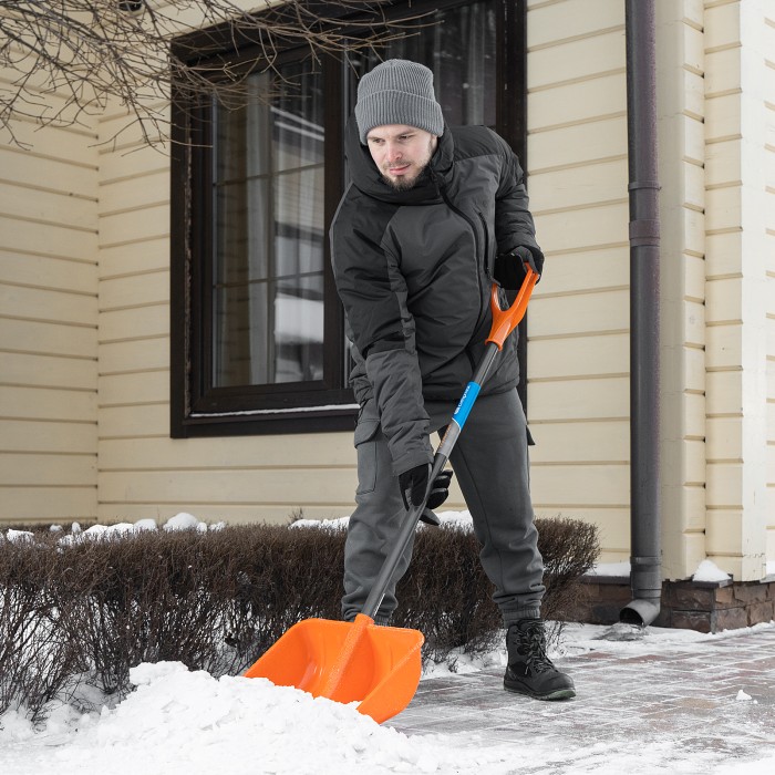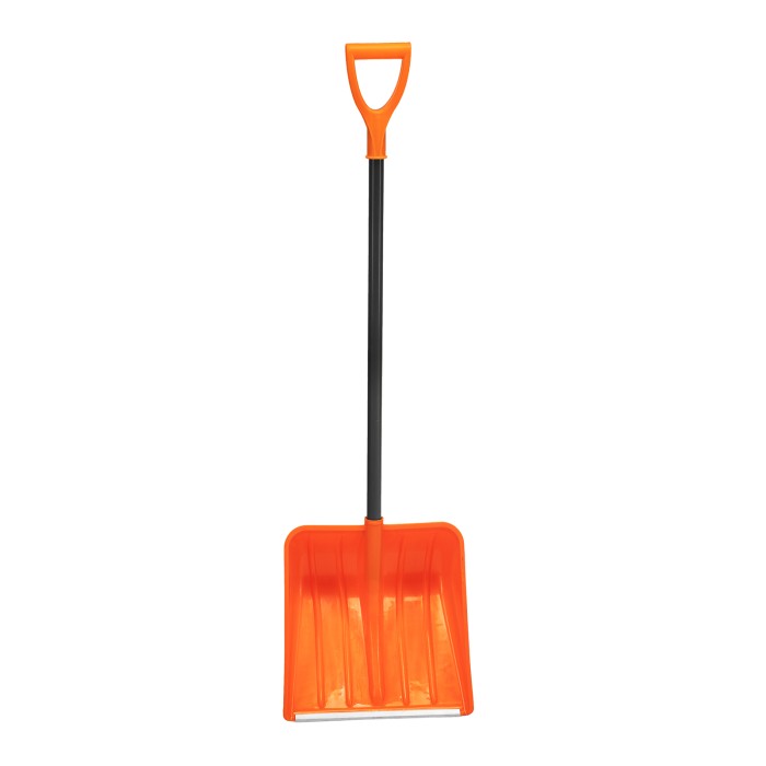 Пластиковая лопата Сибртех 61666 размером 400 х 405 х 1380 мм, со стальным черенком, используется для уборки снега на занесенных дорожках, тротуарах, подъездных путях. Вместительный усиленный ковш с высокими бортиками по...