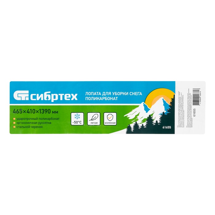 Усиленная лопата для уборки снега Сибртех 61655 длиной 1390 мм, с ковшом из поликарбоната размером 465 х 410 мм, со стальным черенком, используется для расчистки территории после снегопада. С ее помощью можно быстро очистить дорожки на дачном участке и в сквере, тротуар в городе, площадку перед подъездом, гаражом, парковку. Вместительный ковш захватывает большое количество снега, что значительно ускоряет выполнение работ.ПреимуществаМорозостойкость — ковш из поликарбоната выдерживает температуру до -50 °C.Надежность и долговечность — черенок изготовлен из среднеуглеродистой стали, ковш характеризуется высокой ударопрочностью и износостойкостью.Защита от разрушения — черенок покрыт порошковой краской для защиты от коррозии.Износостойкость — алюминиевая планка предохраняет кромку ковша от повреждений и истирания при работе с жестким снегом.Устойчивость к деформации — ударопрочный ковш усилен ребрами жесткости.Эргономичность — удобная рукоятка позволяет эффективно распределять нагрузку во время работы.