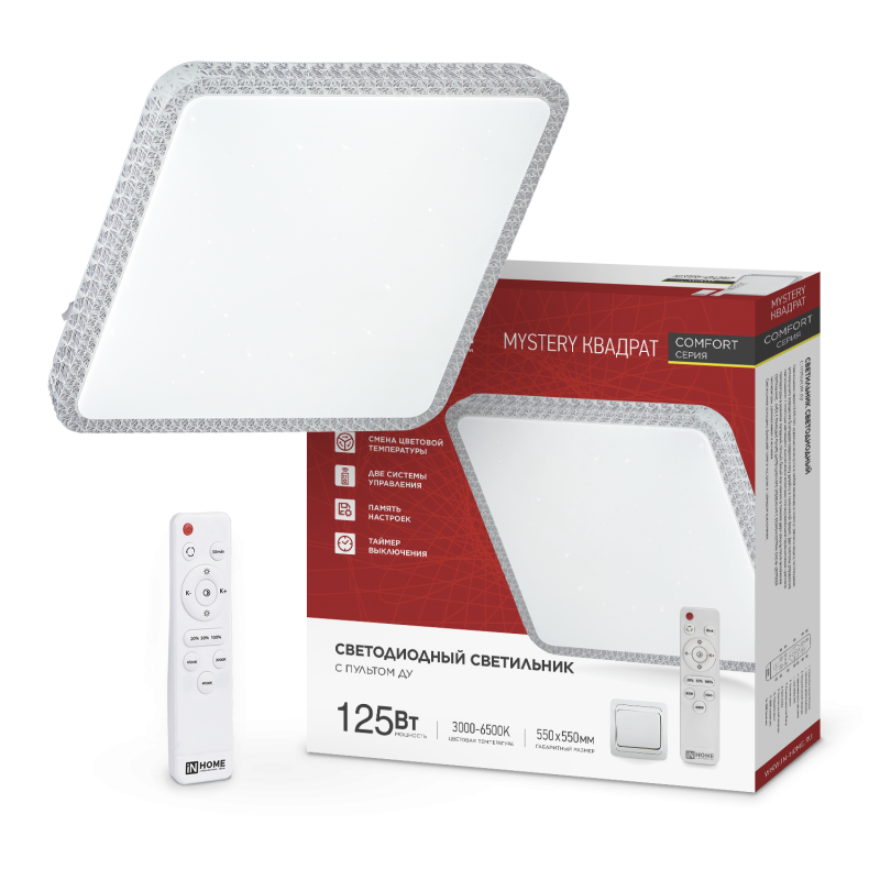 Светильник светодиодный COMFORT CRYSTAL 125Вт 230В 3000-6500K 10000Лм 500x115мм с пультом ДУ IN HOME