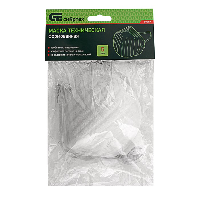 Формованная техническая маска Сибртех 89257 предназначена для защиты высокоточных приборов и техники от воздействия дыхания человека. Предотвращает конденсирование на деталях влаги из выдыхаемого воздуха. Маска не содержит металлических частей и может использоваться в химической промышленности, лабораториях, во время сборки микроэлектроники, высокоточной измерительной аппаратуры, производства оптики и т.д.ПреимуществаЛегкое дыхание — маска из текстурированного полипропилена хорошо пропускает воздух.Комфортная посадка — эластичный ремешок обеспечивает надежную фиксацию.Удобное хранение и транспортировка — маска легко восстанавливает форму.Продуманная комплектация — в упаковке 5 штук, их можно раздать работникам или оставить про запас.