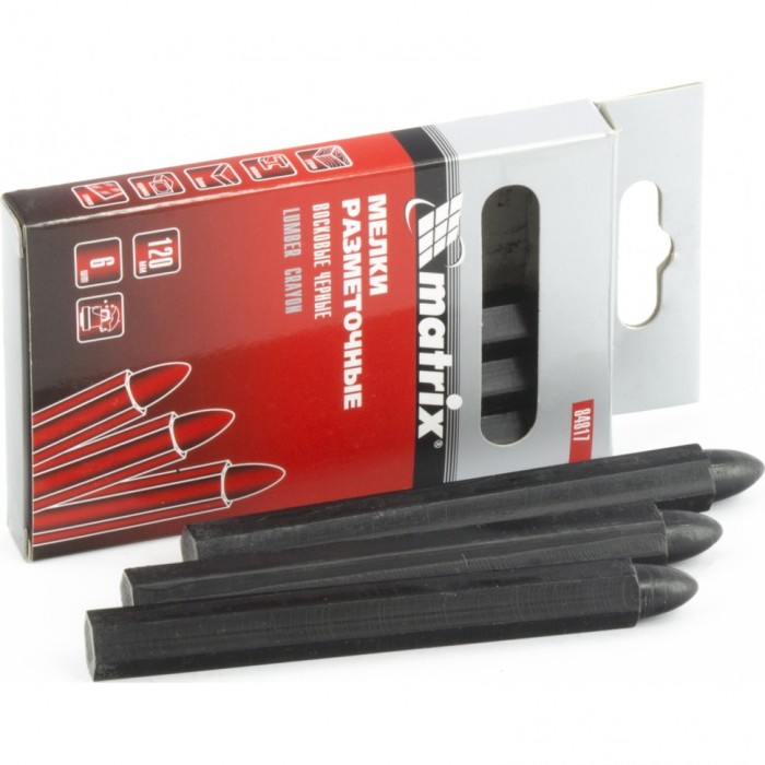 Черные разметочные восковые мелки Matrix 84817 длиной 120 мм, 6 шт. в коробке, предназначены для нанесения линий и различных обозначений. Универсальные мелки можно использовать на гладких и шероховатых поверхностях: бето...
