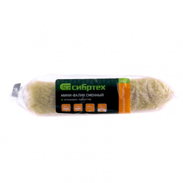 Мини-валик сменный "Фасадные работы", 150 мм, ворс 12 мм, D 1 6мм, D ручки 6 мм, полиакрил, полиэстер Сибртех