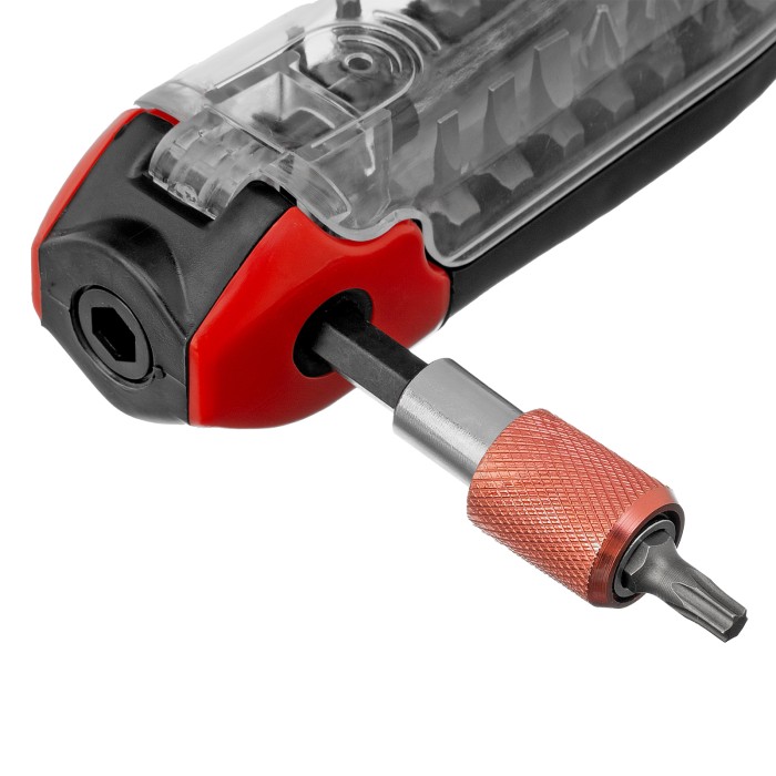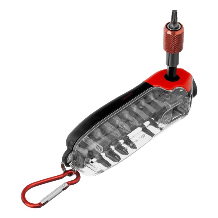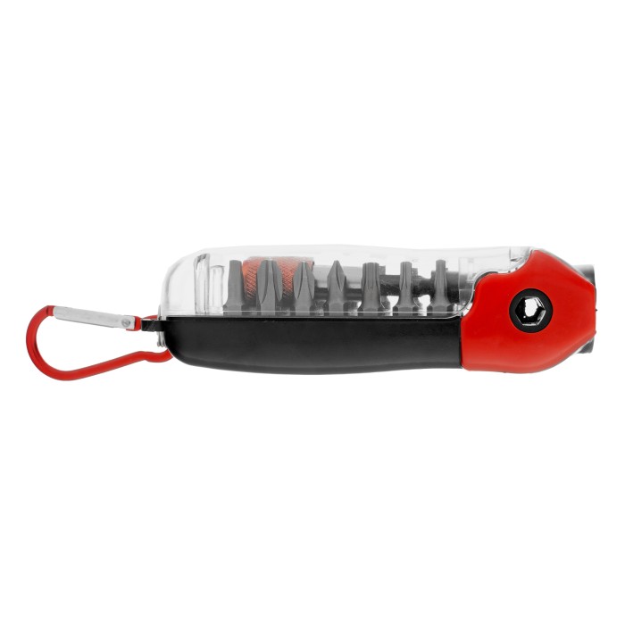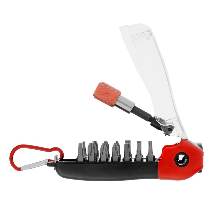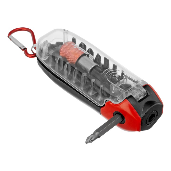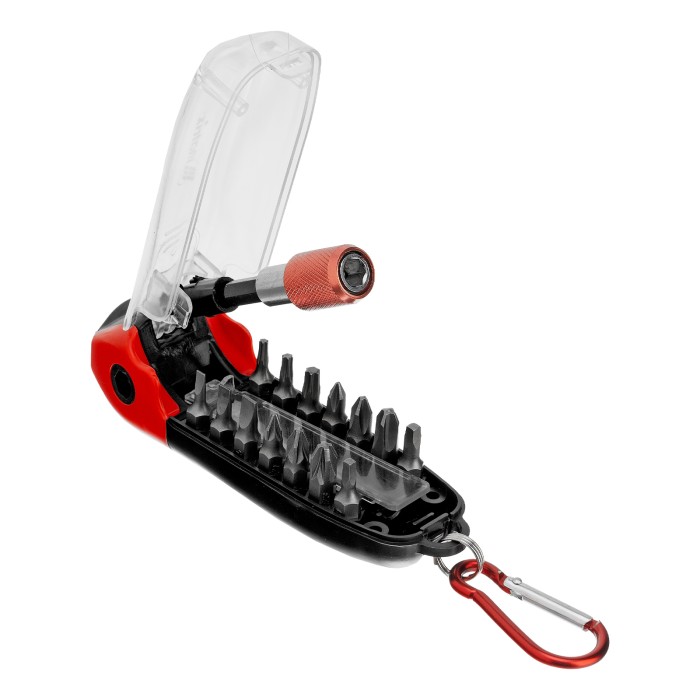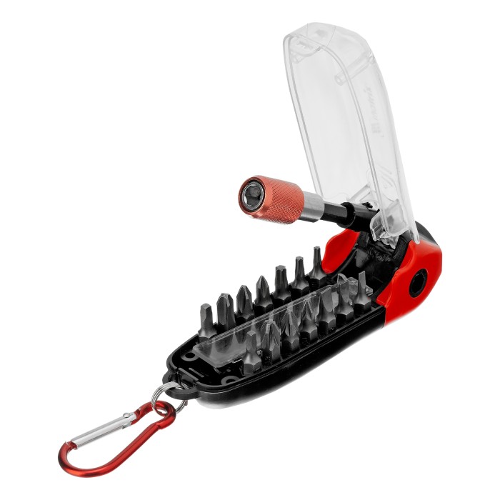 Пластиковый кейс - 1 штБиты 25 мм: РН1, РН2, РН3, PZ1, PZ2, PZ3, SL3, SL4, SL5, T10, T15, T25, SQ1, SQ2 - 14 штБиты 50 мм: PZ1, PZ2 - 2 штБитодержатель - 1 штДержатель бит - 1 шт