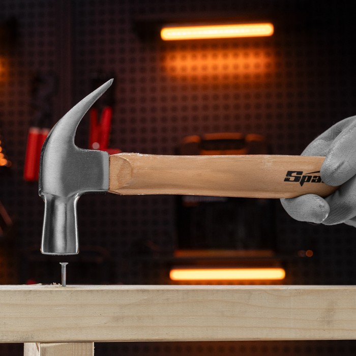 Молоток-гвоздодер, 450 г, боек 27 мм, деревянная рукоятка Sparta