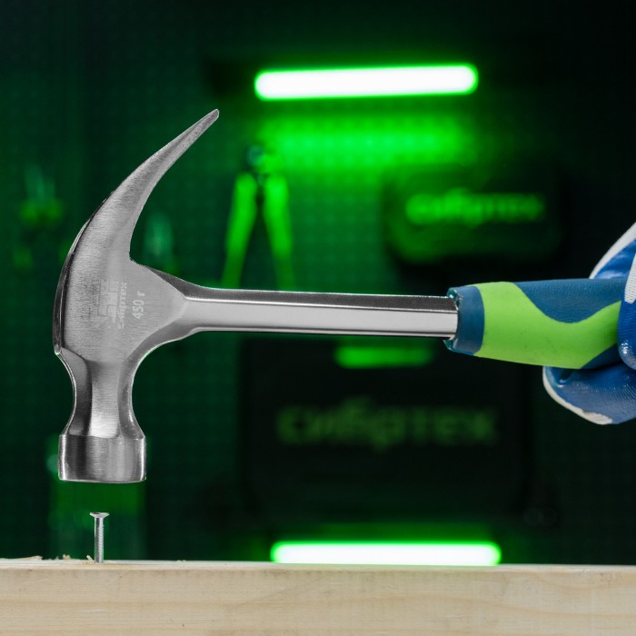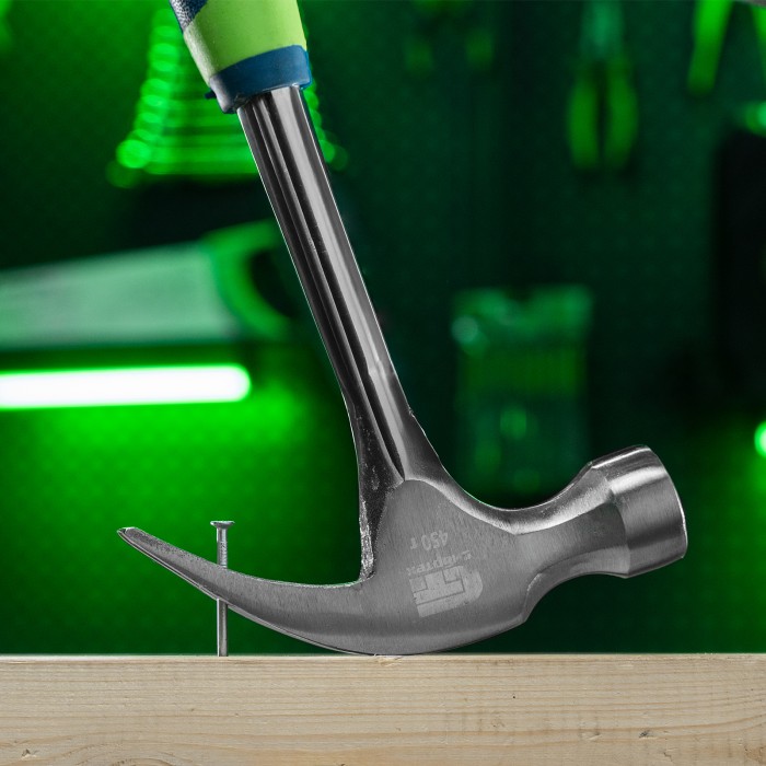 Молоток-гвоздодер, металлическая трубчатая обрезиненная рукоятка, вес 450 г, боек 27 мм Сибртех