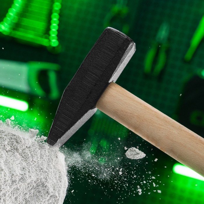 Слесарный молоток Сибртех 10222 длиной 360 мм, с квадратным бойком весом 1000 г и деревянной рукояткой, — ударный инструмент, предназначенный для работ по металлу. Также может использоваться для забивания гвоздей и другого крепежа. Рабочие части бойка имеют разную форму — квадратная удобна для выполнения общих слесарных работ, а заостренная — для нанесения ударов в узких местах. Молоток необходим во время строительства, ремонта, сборки мебели и монтажа различных конструкций, а также используется в домашнем хозяйстве.ПреимуществаУстойчивость к повреждениям — головка изготовлена из стали марки 45, рабочие поверхности прошли селективную закалку до твердости 40-45 HRC, что предотвращает появление расклепов на гранях бойка.Безопасная работа — головка надежно закреплена на расклиненной рукоятке, поэтому не соскочит при ударе.Долговечность — рукоятка покрыта лаком для предотвращения рассыхания.Комфортная эксплуатация — деревянная рукоятка надежно лежит в руке и не выскальзывает из ладони.