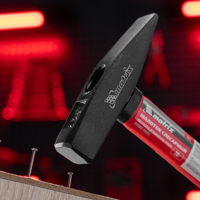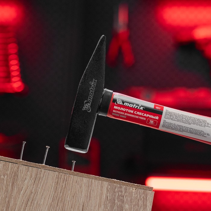 Слесарный молоток Matrix 10317 с квадратным бойком весом 200 г и фибергласовой обрезиненной рукояткой используется для работ по металлу, а также для забивания гвоздей и дюбелей. Оптимален для выполнения большого объема работ с мелким крепежом, облегчает действия в труднодоступных местах. Молоток пригодится во время строительства и ремонта, для сборки мебели, будет полезен и в домашнем хозяйстве.ПреимуществаПрочность — отфрезерованная и отшлифованная головка изготовлена из стали 45 методом ковки.Износостойкость — твердость рабочих частей составляет 40-45 HRC, поэтому инструмент выдерживает длительное использование.Коррозионная стойкость — головка покрыта защитным лакокрасочным составом.Надежная конструкция — головка закреплена на рукоятке при помощи эпоксидной смолы.Возможность работы в сложных условиях — рукоятка из фибергласа не боится воздействий агрессивной среды: растворителей, бензина, масла и т. д.Комфортная работа — легкая фибергласовая рукоятка с прорезиненной поверхностью поглощает колебания от ударов и не выскальзывает из ладони.