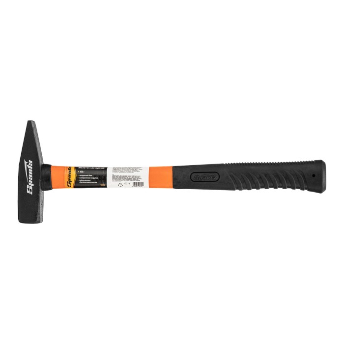 Слесарный молоток Sparta 10373 с бойком весом 300 г и фибергласовой обрезиненной рукояткой — ударный инструмент, который используется для правки металла, сборки мебели и других конструкций, а также для забивания крепежей...