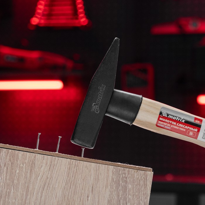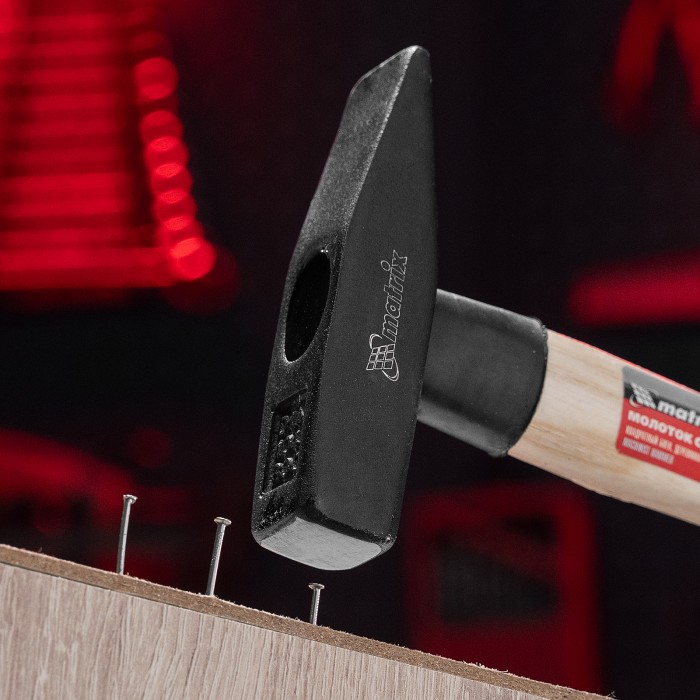 Молоток слесарный, 300 г, квадратный боек, деревянная рукоятка Matrix