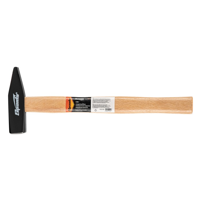 Слесарный молоток Sparta 102105 длиной 320 мм, с квадратным бойком весом 500 г и деревянной рукояткой, предназначен для нанесения ударов при работе с металлом и забивании гвоздей. Позволяет выполнять большой объем работ без усталости и потери точности. Заостренный с одного конца боек облегчает работу в труднодоступных местах. Молоток пригодится на строительной площадке, во время ремонта, сборки и установки мебели, а также будет полезен в домашнем хозяйстве.ПреимуществаПрочность — головка изготовлена из среднеуглеродистой стали 45 методом ковки и отфрезерована, рабочие части бойка закалены до твердости 40-45 HRC.Надежная фиксация головки — она закреплена на рукоятке путем расклинивания и дополнительно проклеена эпоксидным клеем.Защита от разрушения — головка покрыта черным лаком, бесцветное лаковое покрытие предохраняет рукоятку от рассыхания.Комфортная работа — гладкая деревянная рукоятка не выскальзывает из ладони.