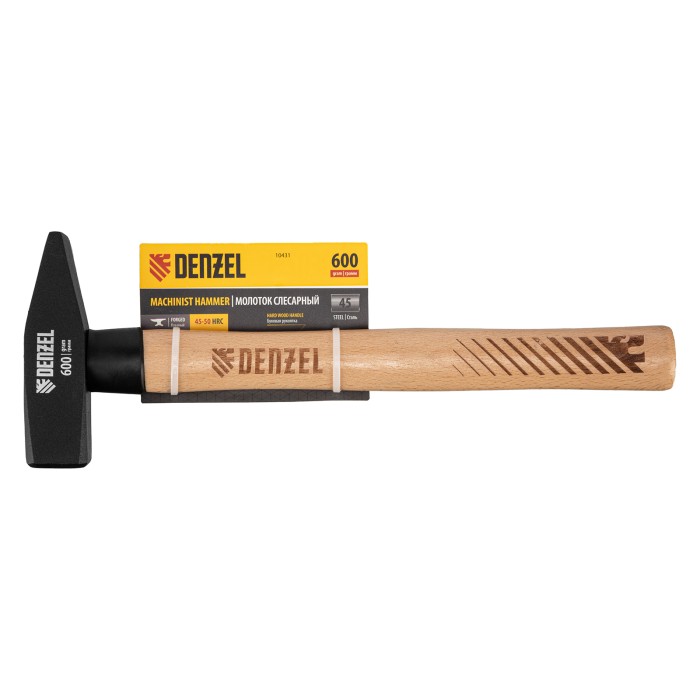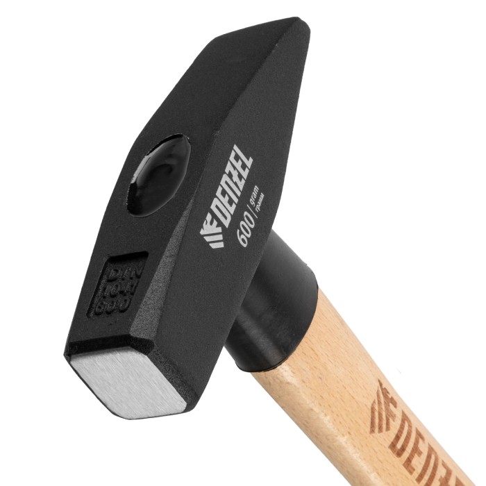 Молоток слесарный, 600 г, кованый квадратный боек, буковая рукоятка Denzel