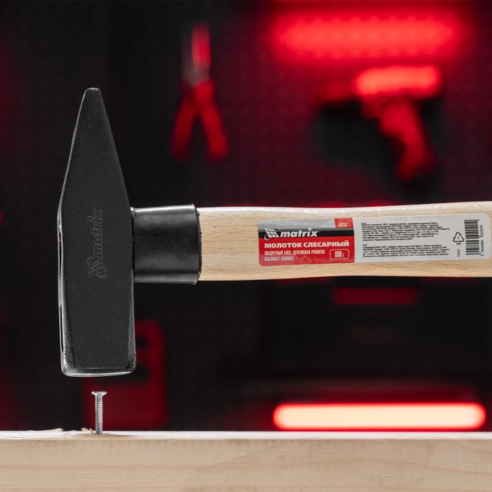 Молоток слесарный, 600 г, квадратный боек, деревянная рукоятка Matrix