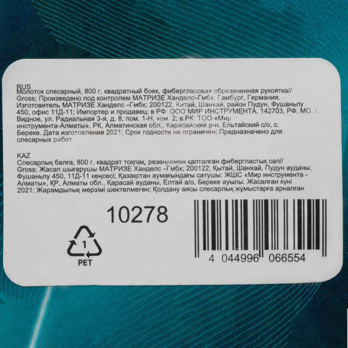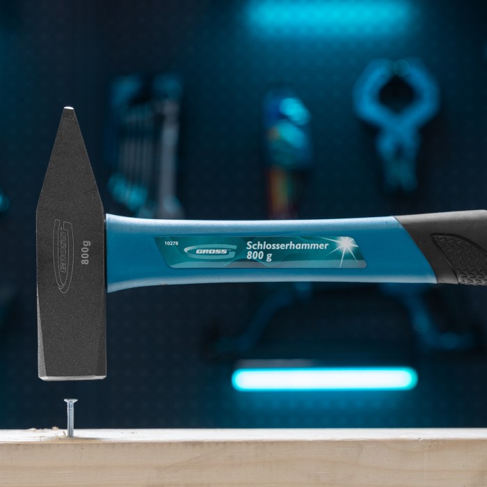 Слесарный молоток Gross 10278 с квадратным бойком весом 800 г и фибергласовой обрезиненной рукояткой предназначен для работы с металлическими заготовками, забивания гвоздей, штырей, дюбелей и другого крепежа. Подходит для манипуляций в узких местах благодаря заостренной форме бойка. Молоток рекомендован для профессионального и домашнего применения.ПреимуществаОптимальная прочность и твердость — головка инструмента изготовлена из стали 45, закалена токами высокой частоты, отфрезерована и отшлифована.Деформационная стойкость — твердость квадратной части бойка составляет 50-52 HRC на глубину до 3 мм, твердость носка — 44-46 HRC.Устойчивость к динамическим нагрузкам — область всада характеризуется наименьшей твердостью 34-36 HRC, что исключает появление трещин при выполнении работ.Надежная конструкция — рукоятка прочно фиксирует головку при помощи эпоксидной смолы, поэтому она не соскочит при ударе.Комфортное использование — фибергласовая рукоятка поглощает вибрации от отдачи, обрезиненная поверхность обеспечивает отличное сцепление с ладонью.Работа в сложных условиях — фиберглас не подвержен воздействию влаги и агрессивных сред.