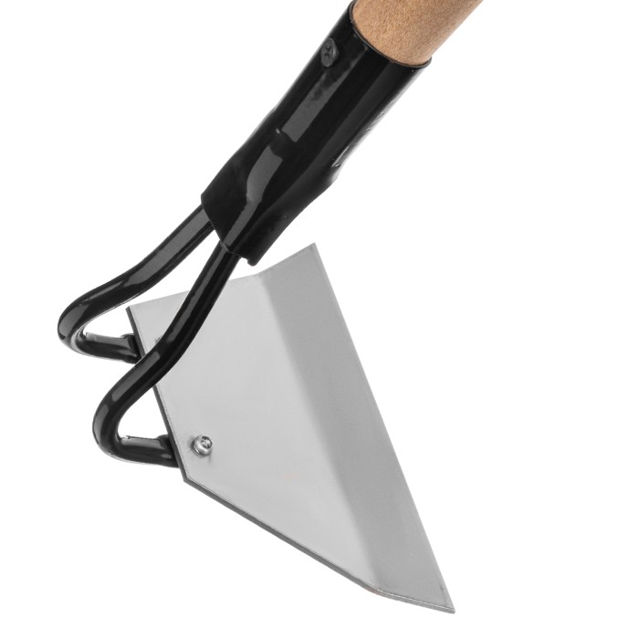 Усиленная мотыга Сибртех 62288 из нержавеющей стали, длиной 1325 мм, с рабочей частью размером 150 х 90 мм, с деревянным черенком, используется для рыхления почвы, уничтожения сорной травы и окучивания растений. Полотно из «нержавейки» устойчиво к коррозии. Отшлифованный деревянный черенок удобно ложится в руки и позволяет снизить нагрузку на позвоночник. Мотыга пригодится владельцам приусадебных участков.ПреимуществаЭффективность — острое лезвие быстро погружается в почву и легко подрезает корни сорняков.Прочность и долговечность — полотно толщиной 2,5 мм выдерживает повышенные нагрузки.Коррозионная стойкость — тулейка и державка покрыты порошковой эмалью.Надежная конструкция — полотно и державка соединены при помощи заклепок, черенок из древесины твердых пород устойчив к излому и закреплен в тулейке саморезом.