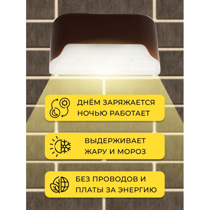Светильник садово-парковый на солнечной батарее, серии «Solar», (ДБУ) Solar LED MP101 0.1W, IP44, цвет коричневый, прямоугольник, накладной, 80*15*45мм