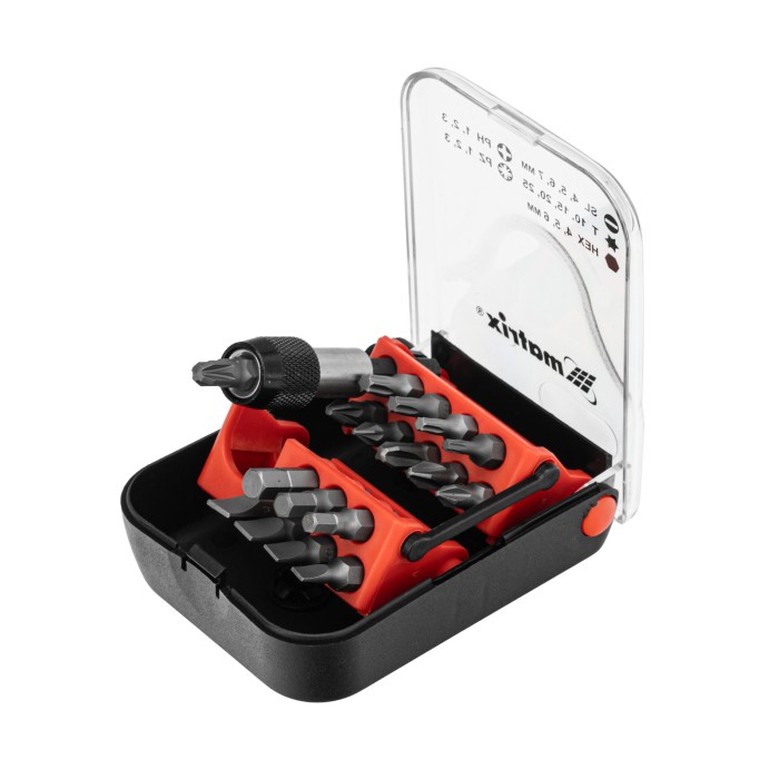 Набор бит, адаптер для бит, сталь S2, 18 предметов, пластиковый кейс Matrix