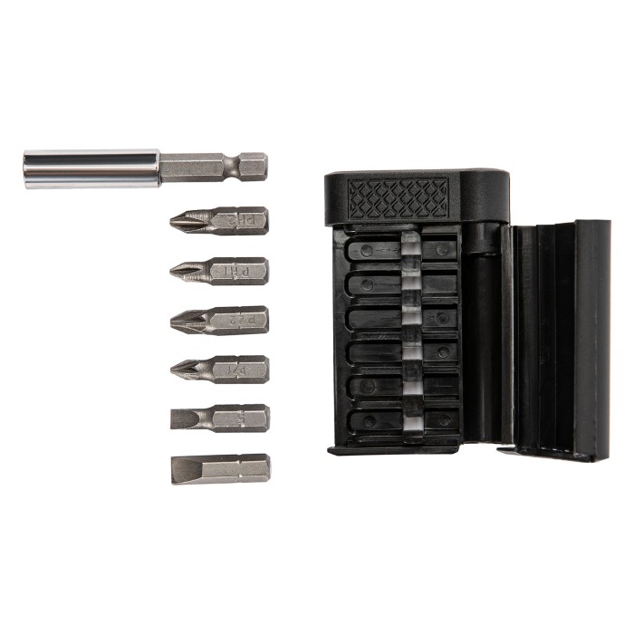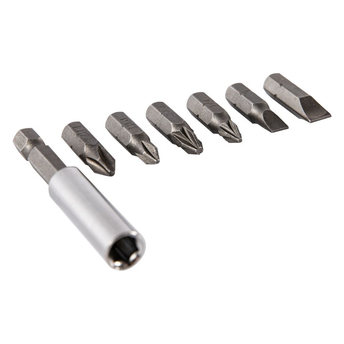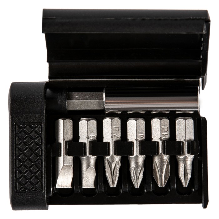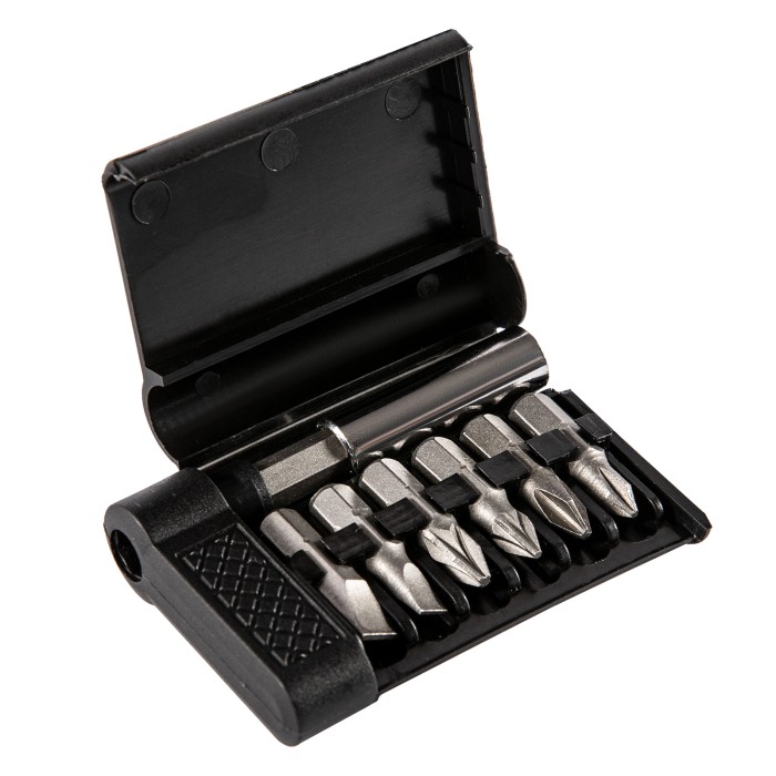 Пластиковый кейс - 1 штБиты 25 мм: РН1, РН2, PZ1, PZ2, SL5, SL7 - 6 штБитодержаель 1/4" - 1 штДержатель бит - 1 шт