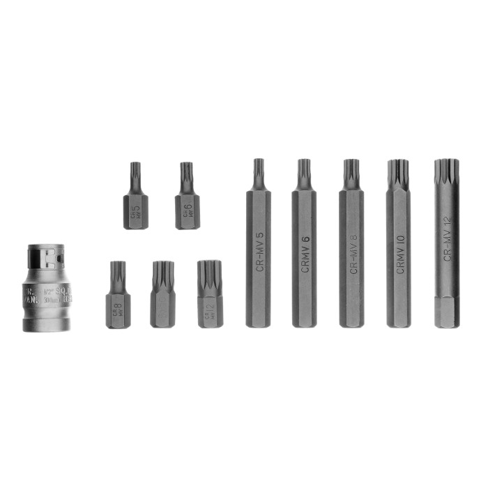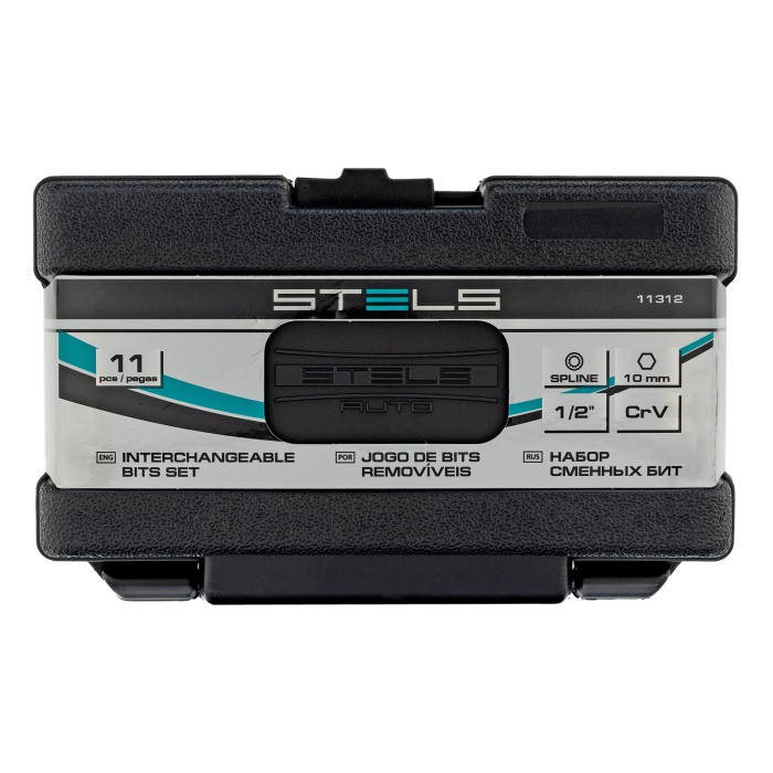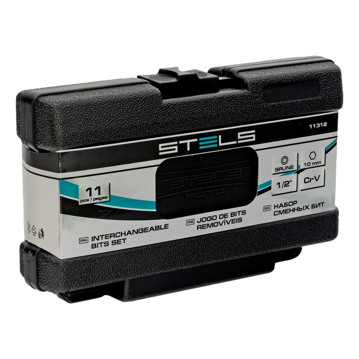 Набор Stels 11312 включает 11 предметов: 10 бит SPLINE из стали CrV, с шестигранным хвостовиком 1/2 дюйма, и переходник. Биты со шлицами в виде 12-лучевых «звезд» используются для монтажа и демонтажа резьбовых соединений с головками SPLINE М5, М6, М8, М10 и М12. Набор будет полезен в автомобильном производстве, на станции техобслуживания, в гараже для выполнения работ, требующих максимального усилия затяжки.ПреимуществаВысокий ресурс — биты из хромованадиевой стали твердостью 50-53 HRC отличаются износостойкостью.Возможность работы в труднодоступных местах — в комплект входят насадки длиной 75 мм.Дополнительные возможности — переходник позволяет устанавливать биты с хвостовиком 1/2 дюйма на инструменты с посадочным размером 3/8 дюйма.Удобное хранение и транспортировка — набор поставляется в кейсе с ложементом с указанием размера бит.