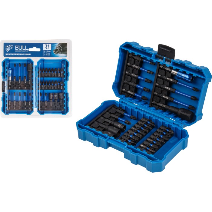 Набор ударных бит BULL Impact IMB 31 предназначен как для тяжелых нагрузок при работе ударными винтовертами и шуруповертами, так и для стандартных работ с крепежом разного вида.