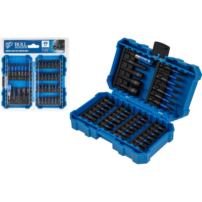Набор ударных бит BULL Impact IMB 40 предназначен как для тяжелых нагрузок при работе ударными винтовертами и шуруповертами, так и для стандартных работ с крепежом разного вида.