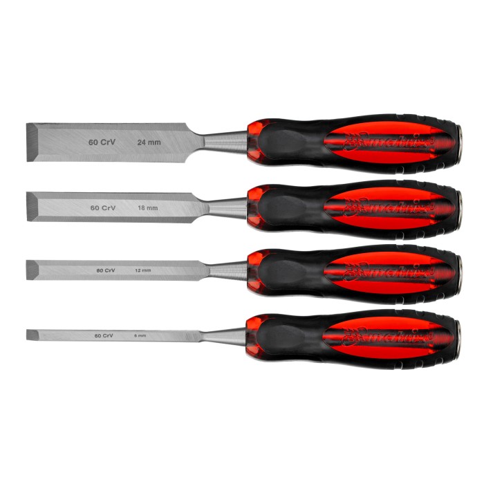 Набор долот-стамесок плоских Matrix «Тигровый глаз» 24432, 4 штуки размером 6-12-18-24 мм, используется для обработки древесины любых пород. Стамески позволяют выбирать пазы, проделывать выемки, снимать фаски, выдалблива...