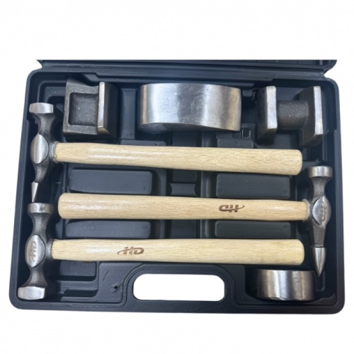 Набор инструмента для рихтовочных работ, 3 молотка с дер. ручками, 4 наковальни, кованый "H-D"Технические характеристики:...
