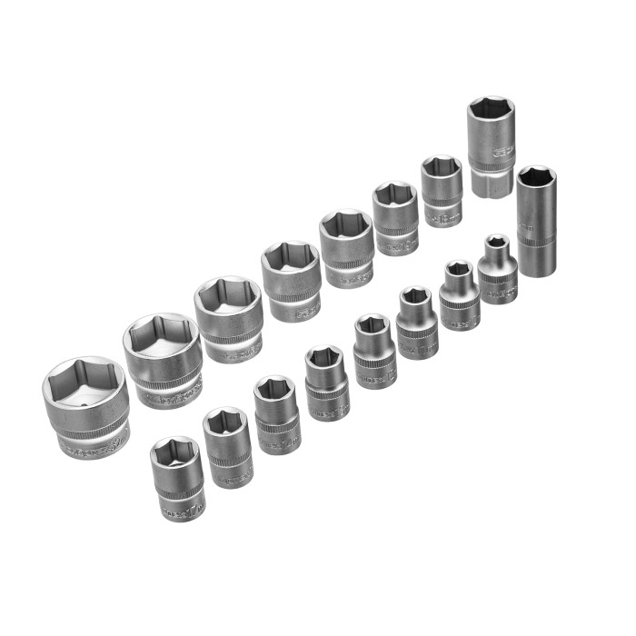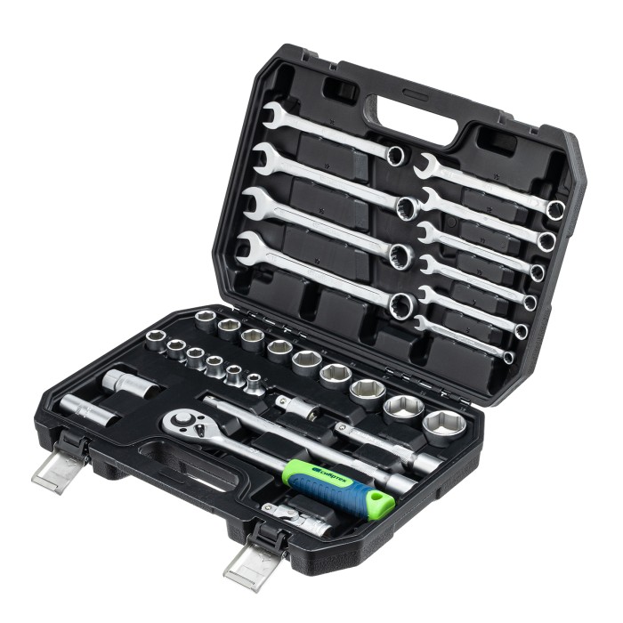 Набор инструментов Сибртех 13393, поставляющийся в пластиковом кейсе, состоит из 32 предметов с присоединительным размером 1/2", предназначенных для закручивания и откручивания резьбового крепежа. В комплект поставки вхо...