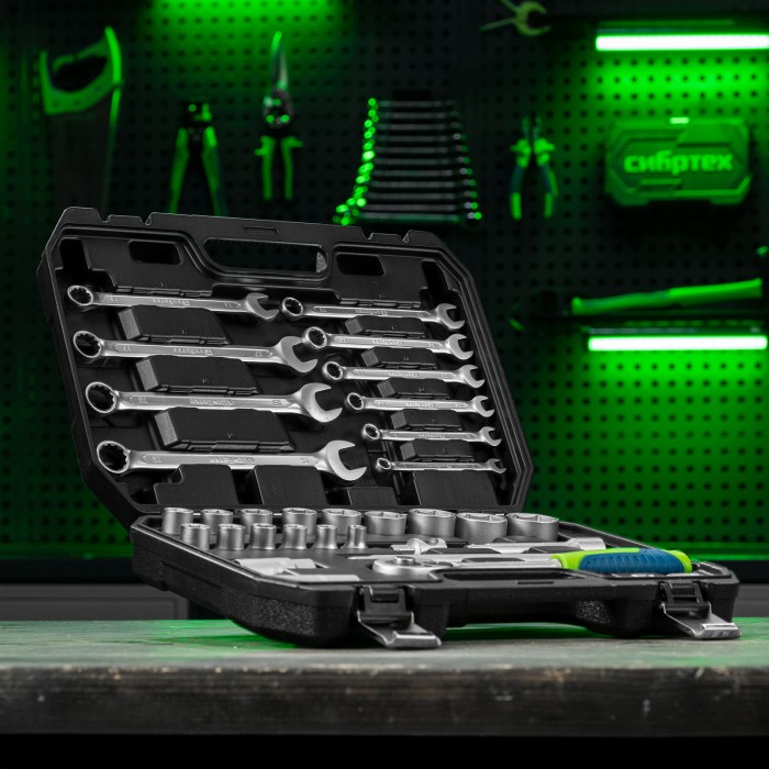 Набор инструментов, 1/2", пластиковый кейс, 32 предмета// Сибртех