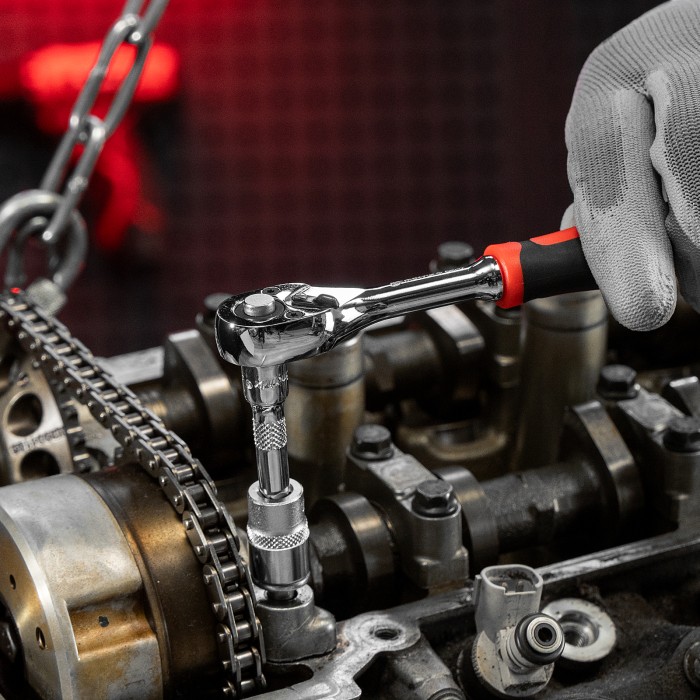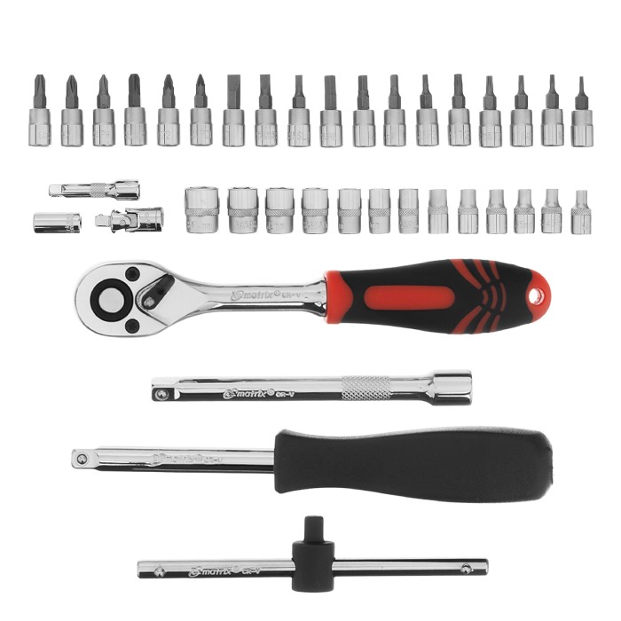 Слесарно-монтажный набор Matrix 13522 состоит из 38 предметов с присоединительным квадратом 1/4" и используется для монтажа и демонтажа гаек, болтов, шурупов, винтов и другого резьбового крепежа. Незаменим в мастерской или гараже, пригодится в быту. В набор входят торцевые головки размером от 4 до 14 мм, что позволяет решать широкий спектр задач.ПреимуществаПрочность и долговечность — элементы набора изготовлены из хромованадиевой стали.Реверс — трещоточным ключом можно не только закручивать, но и откручивать крепеж.Быстрая замена головок — кнопка сброса на трещотке позволяет мгновенно снять насадку.Комфортная работа в труднодоступных местах — в комплект поставки входит карданный шарнир, а также удлинители 50 и 100 мм.Эргономичность — ключ удобно лежит в руке, что позволяет работать без ощущения усталости.Удобное хранение и транспортировка — набор упакован в противоударный пластиковый кейс с ложементом.