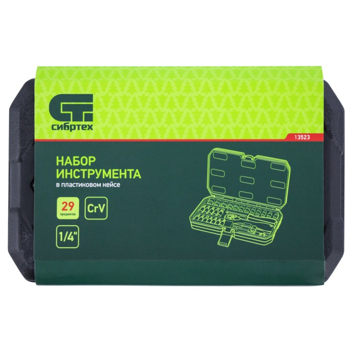 Набор инструментов 29 предметов, CrV, 1/4" Сибртех