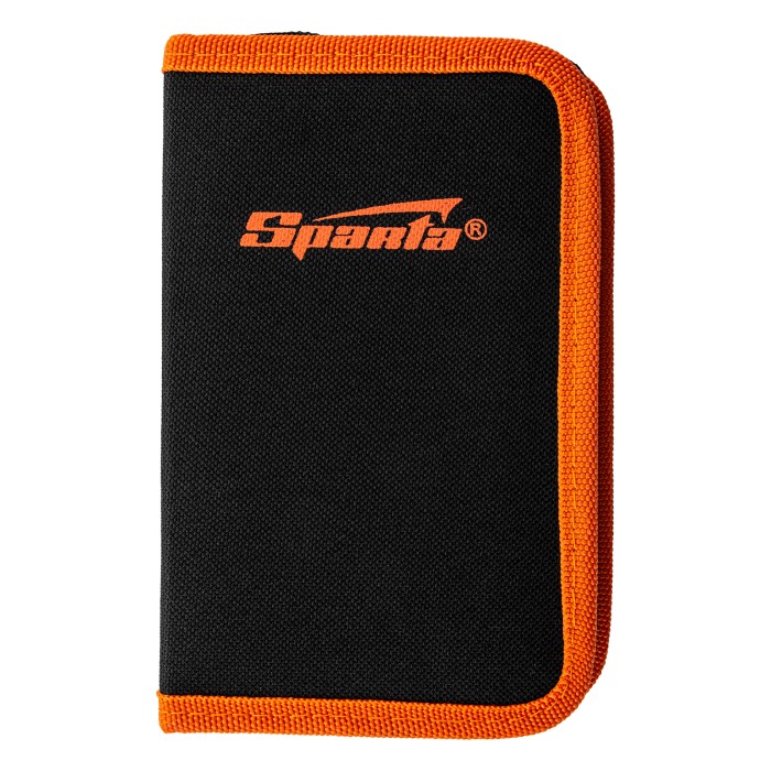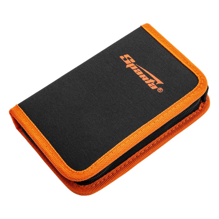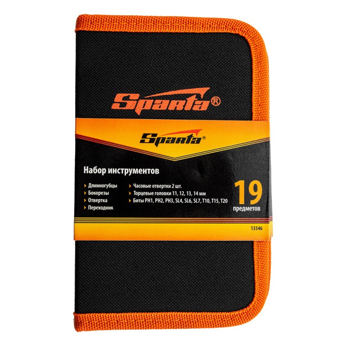 Набор Sparta 13546 из 19 предметов используется для проведения слесарно-монтажных работ. В комплект входят отвертки для точных работ, отвертка для бит, биты и торцевые головки для монтажа/демонтажа крепежных элементов, бокорезы и длинногубцы для захвата, удержания и перекусывания проводов и мелких деталей. Набор будет полезен дома и в частной мастерской.ПреимуществаПрочность и долговечность — рабочие части элементов набора выполнены из инструментальной стали и закалены до необходимой твердости.Универсальность — в комплект входят биты и головки наиболее распространенных размеров.Удобное хранение и транспортировка — набор поставляется в тканевом пенале на молнии.