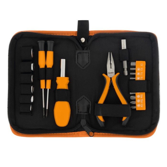 Длинногубцы - 1 штГоловки 9, 10, 11, 12, 13, 14 - 6 штОтвертки для точных работ SL, PH - 2 штОтвертка для бит - 1 штАдаптер для бит - 1 штБиты PH, SL, T - 9 штДержатель для бит с магнитом - 1 штКейс - 1 штГоловки - 1 штПассатижи - 1 шт