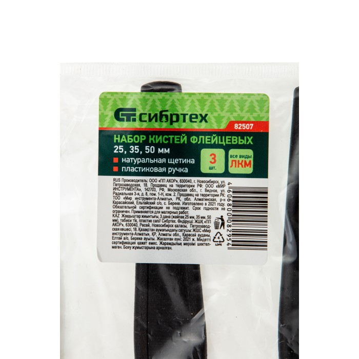 Набор Сибртех 82507 включает 3 флейцевые кисти шириной 25, 35 и 50 мм из светлой натуральной щетины, с пластиковыми ручками, предназначенные для проведения малярных работ. Узкие кисти оптимальны для окрашивания мелких деталей и работы в труднодоступных местах.ПреимуществаВысокое качество выполняемых работ — щетина HANKOW прошла двойную выварку и не содержит посторонних включений.Универсальность — кисти не боятся воздействия растворителей и могут использоваться с ЛКМ любого типа.Эффективная работа — ТОПС (плотность пучка) кистей составляет не менее 70, поэтому они хорошо набирают и удерживают краску.Удобная сушка и хранение — в рукоятках имеются отверстия для подвешивания кистей на крючок или гвоздь.