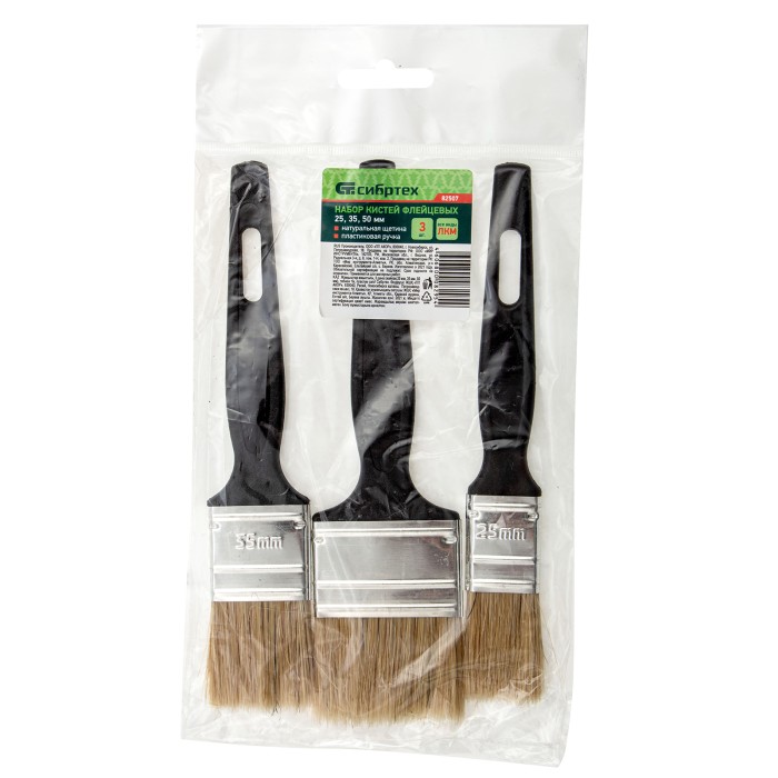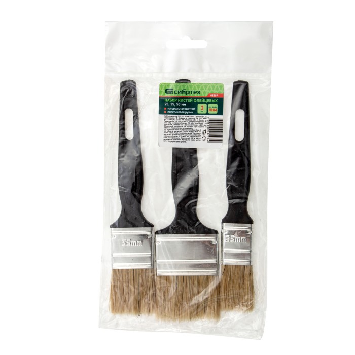 Набор кистей флейцевых 3 шт. (25 мм, 35 мм, 50 мм) натуральная щетина, пластиковая ручка Сибртех