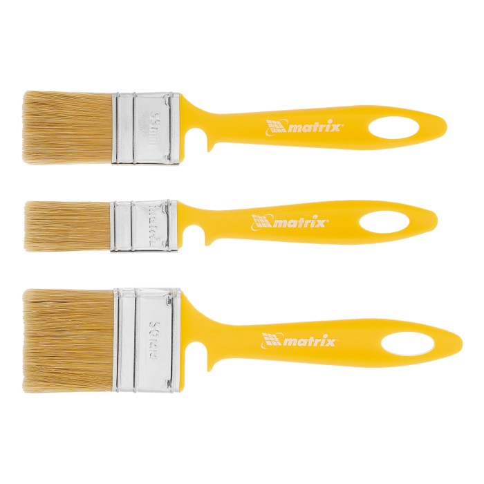 Набор Matrix Color Line «ЛАКИ» 83367 включает флейцевые кисти шириной 25, 35 и 50 мм, использующиеся для отделочных работ с применением лаков на акриловой, водной и натуральной основе. Ими удобно лакировать небольшие участки. Искусственная щетина отличается повышенной упругостью, поэтому кисти обеспечивают высокое качество работ.ПреимуществаПолучение гладкого финишного покрытия — волокна щетины расщеплены на концах.Возможность многократного мытья и замачивания — клинья изготовлены из пластика, а щетина проклеена качественной эпоксидной смолой.Коррозионная стойкость — бандаж имеет защитное покрытие, благодаря которому кисти можно замачивать в воде.Комфортная работа — благодаря оптимальной форме рукояток мастер не устает во время окрашивания.Продуманное хранение — в рукоятках имеются отверстия для подвешивания кисти, а на время перерыва в работе инструменты можно закрепить на краю ведра или банки — для этого предусмотрены специальные выемки.