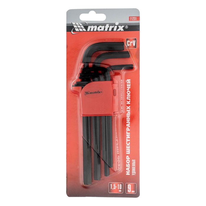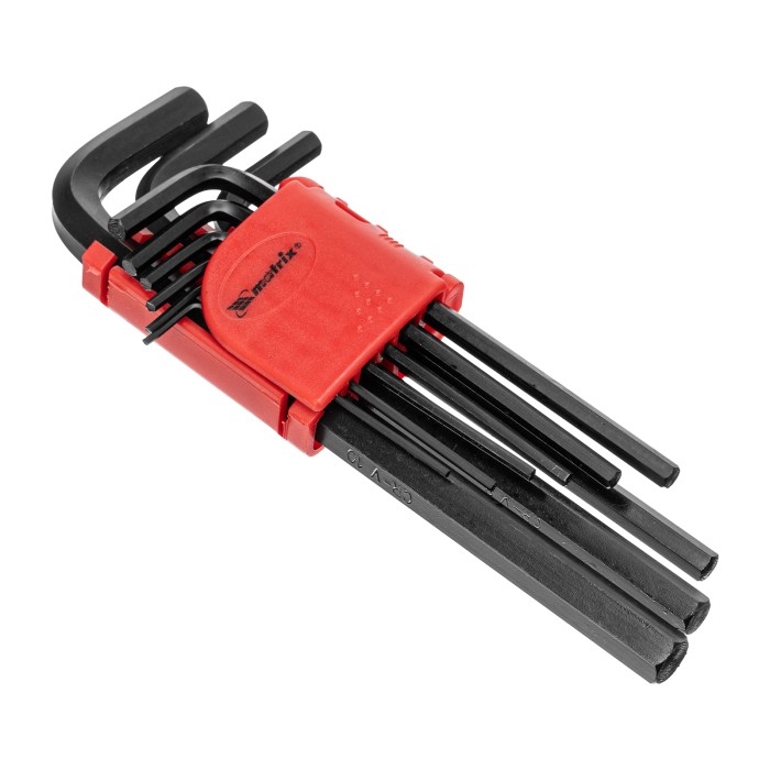 Набор ключей имбусовых HEX, 1.5-10 мм, CrV, 9 шт, удлиненные Matrix