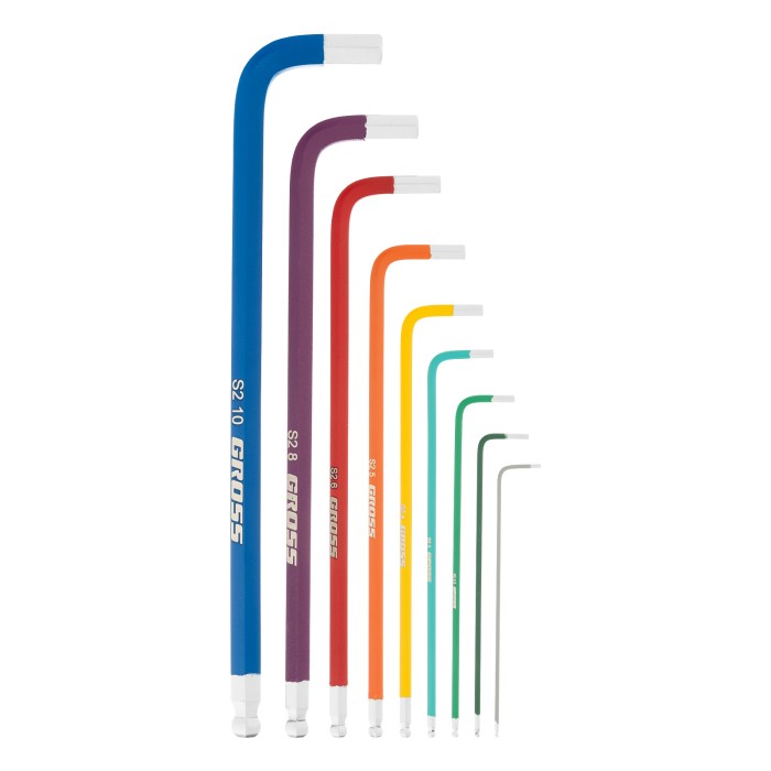 Набор ключей имбусовых HEX, 1.5-10 мм, S2, 9 шт, магнит, экстра-длинные с шаром, хром/краска Gross