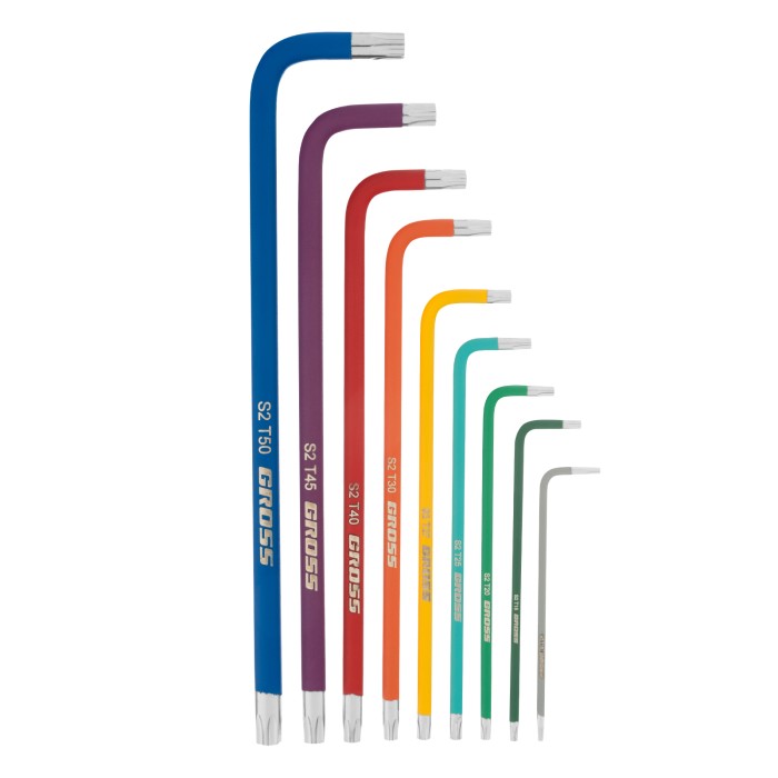 Набор ключей имбусовых Torx -TT, 9 шт: T10-T50, магнит, S2, экстра-длинные, хром/краска 9 шт Gross