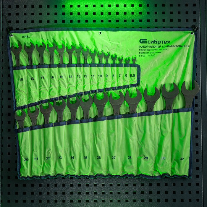 Набор комбинированных ключей Сибртех 15481 включает 27 инструментов из стали CrV, с фосфатированной поверхностью, соответствующих ГОСТ 16983, и предназначен для откручивания и закручивания крепежа размером 5,5-32 мм с 6-гранным или 12-гранным профилем головки. Внутренняя поверхность кольцевого зева с 12 гранями обеспечивает плотный контакт с головкой крепежа, что предотвращает деформацию ее граней. Ключи используются для слесарно-монтажных работ, будут полезны в строительстве, во время ремонта, а также пригодятся дома или в гараже.ПреимуществаВысокая прочность — инструменты изготовлены из хромованадиевой стали по технологии горячей ковки.Износостойкость — ключи прошли закалку и отпуск, твердость рабочих частей составляет 42-47 HRC.Защита от разрушения — поверхность инструментов фосфатирована для предотвращения образования коррозии.