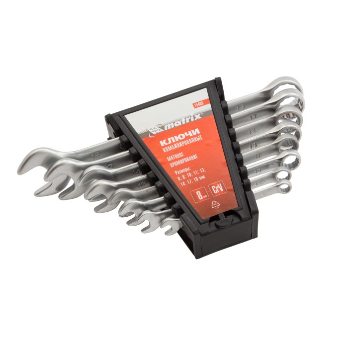 Набор ключей комбинированных, 6-19 мм, 8 шт, CrV, матовый хром Matrix