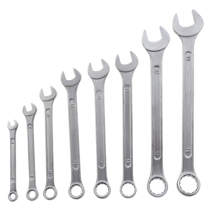 Набор ключей комбинированных - 8 шт, типоразмеры - 6, 8, 10, 12, 13, 14, 17, 19