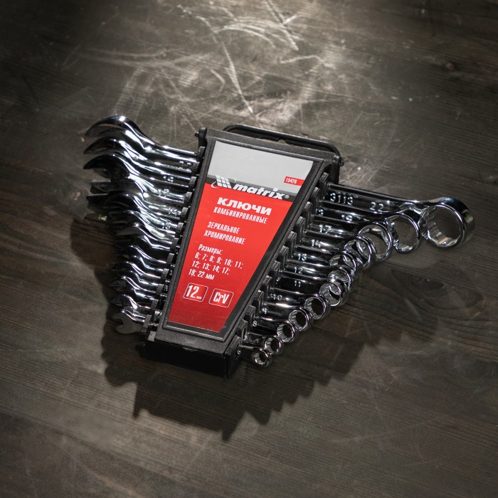 Набор ключей комбинированных, 6-22 мм, 12 шт, CrV, полированный хром Matrix
