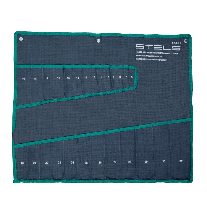 Набор Stels 15431 включает 26 комбинированных ключей из стали CrV, размером от 6 до 32 мм, покрытых матовым хромом, и используется для закручивания и откручивания гаечных и болтовых соединений. Накидная головка каждого ключа имеет 12-гранную внутреннюю поверхность, что облегчает работу с крепежом и уменьшает риск его повреждения. Ключи применяются в слесарных мастерских и автосервисах, а также будут полезны для решения бытовых задач.ПреимуществаВысокий показатель прочности и износостойкости — ключи изготовлены из хромованадиевой стали, рабочие части закалены до твердости 40-45 HRC.Защита от разрушения — матовое хромированное покрытие предотвращает образование коррозии.Комфорт при монтаже в труднодоступных местах — кольцевой зев наклонен под углом в 15° к плоскости ключей.Удобная упаковка — набор поставляется в прочной тетроновой сумке-раскладке с люверсами для подвешивания на верстак или стену.