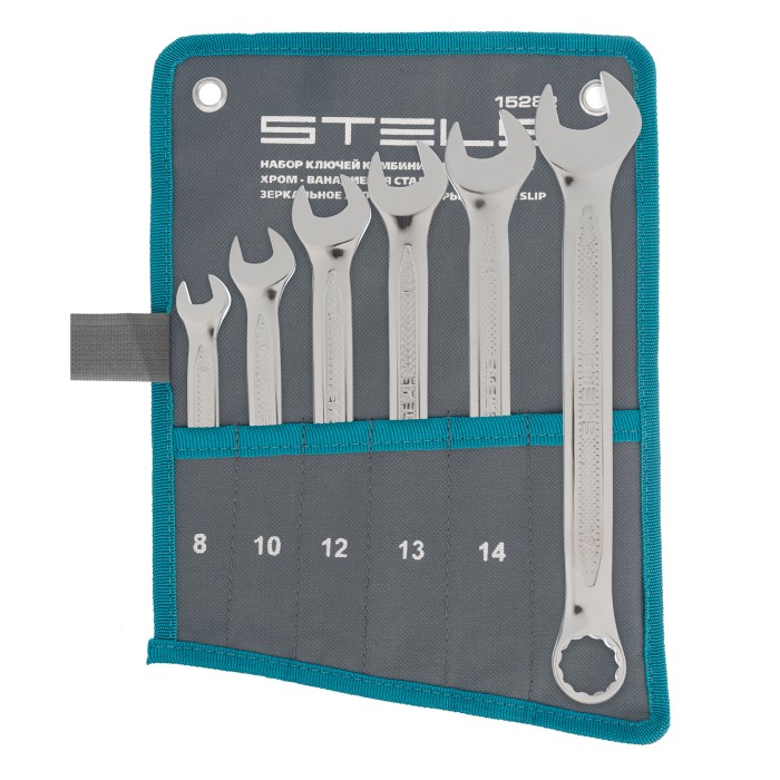Набор Stels 15282 включает 6 комбинированных ключей из стали CrV, размером от 8 до 17 мм, антислип, которые позволяют откручивать и закручивать резьбовые соединения. Они универсальны в применении, т.к. имеют кольцевую и рожковую головки. 12-гранный профиль накидного зева обеспечивает увеличенную площадь контакта с поверхностью крепежа, что минимизирует вероятность его деформации. Ключи будут полезны в автомастерской, для монтажа и демонтажа оборудования, пригодятся для работ по дому.ПреимуществаВысокий показатель прочности — инструменты изготовлены из стали хромованадиевой группы, твердость рабочих частей составляет 42-50 HRC.Улучшенные антикоррозионные свойства и повышенная износостойкость благодаря хромированному покрытию.Удобство при выполнении монтажных работ — кольцевой зев каждого ключа смещен на 15 градусов относительно его тела.Надежный хват — благодаря рельефной поверхности ключи не скользят в руке.