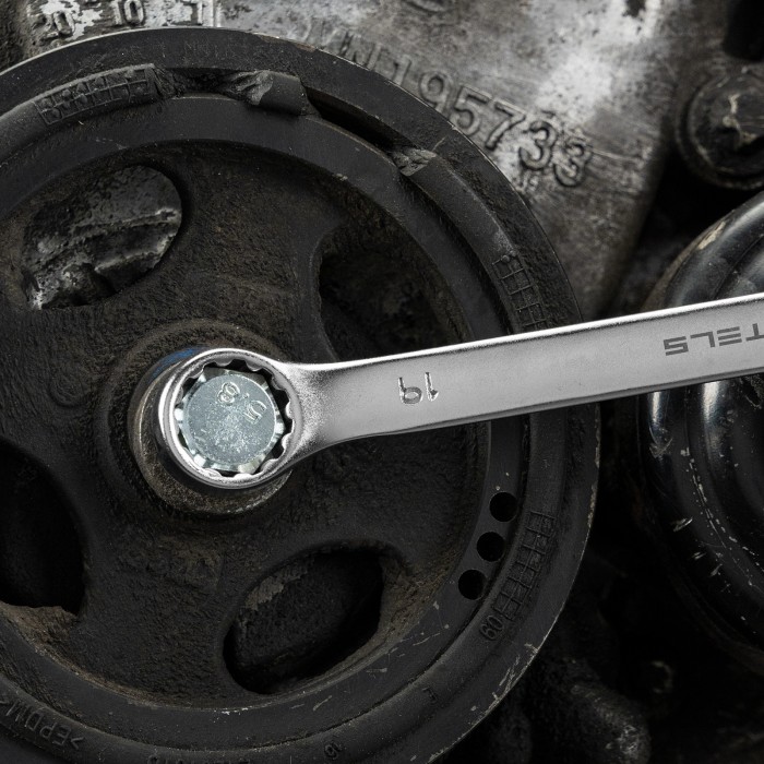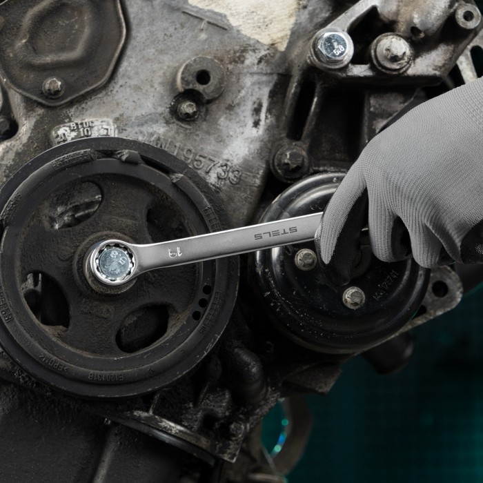 Набор Stels 15428 включает 8 комбинированных ключей из стали CrV, размером от 8 до 19 мм, покрытых матовым хромом, и используется для закручивания и откручивания гаечных и болтовых соединений. Накидная головка каждого ключа имеет 12-гранную внутреннюю поверхность, что облегчает работу с крепежом и уменьшает опасность его повреждения. Ключи применяются в слесарных мастерских и автосервисах, а также будут полезны для решения бытовых задач.ПреимуществаВысокий показатель прочности — ключи изготовлены из стали хромованадиевой группы, рабочие части закалены до твердости 45 HRC.Матовое хромоникелевое покрытие — инструменты защищены от образования коррозии.Комфорт при монтаже в труднодоступных местах — кольцевой зев наклонен под углом в 15 градусов к плоскости ключей.