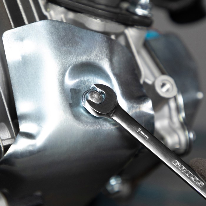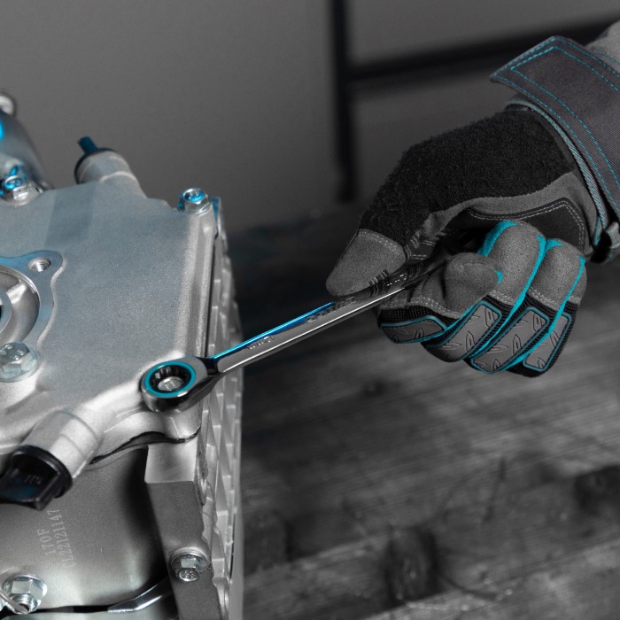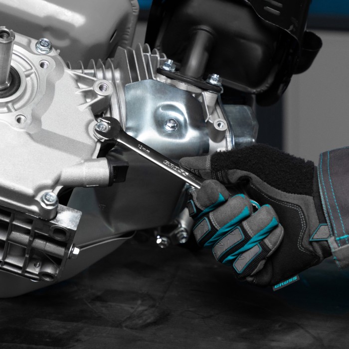 Набор комбинированных ключей с трещоткой Gross 14890 используется для монтажа и демонтажа болтов и гаек и включает 7 инструментов размером от 8 до 19 мм, выполненных из стали CrV. Каждый из них имеет две рабочие головки — рожковую и накидную, что расширяет возможности применения. У накидной головки 12-гранный профиль, благодаря чему она надежно захватывает крепеж. Набор подходит как для профессионального, так и для самостоятельного ремонта автомобилей.ПреимуществаПрочность и повышенная твердость — ключи изготовлены из высококачественной стали хромованадиевой группы.Долговечность — хромоникелевое покрытие предохраняет инструменты от коррозии.Высокий ресурс — твердость материала трещотки составляет 43-47 HRC, поэтому она устойчива к интенсивным нагрузкам.Удобная работа даже в труднодоступных местах — храповой механизм с 72 зубцами обеспечивает плавную и быструю работу с резьбовыми соединениями (угол отклонения трещотки составляет всего 5 градусов).