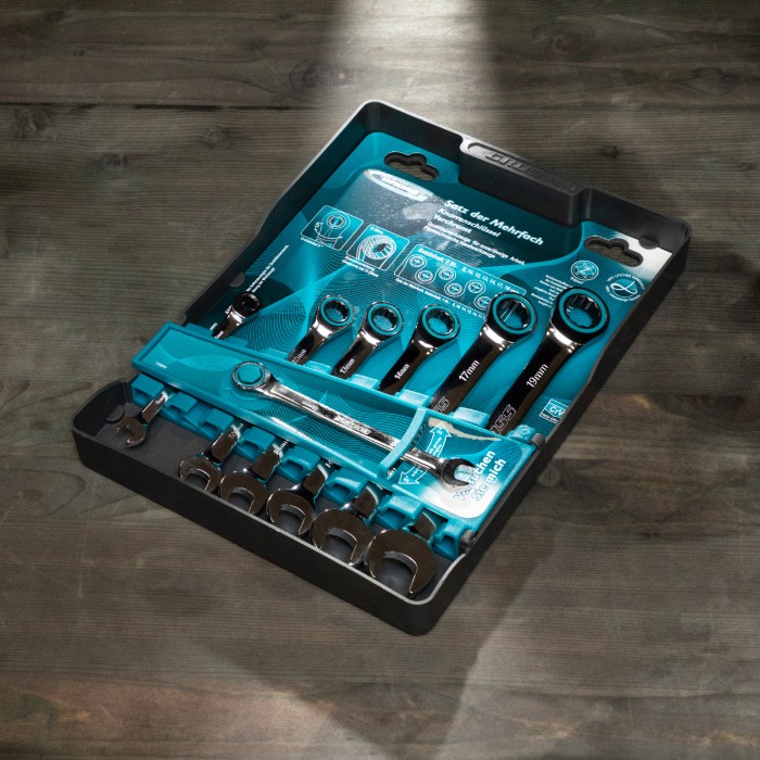 Набор ключей комбинированных с трещоткой - 7 шт, типоразмеры - 8, 10, 12, 13, 14, 17, 19